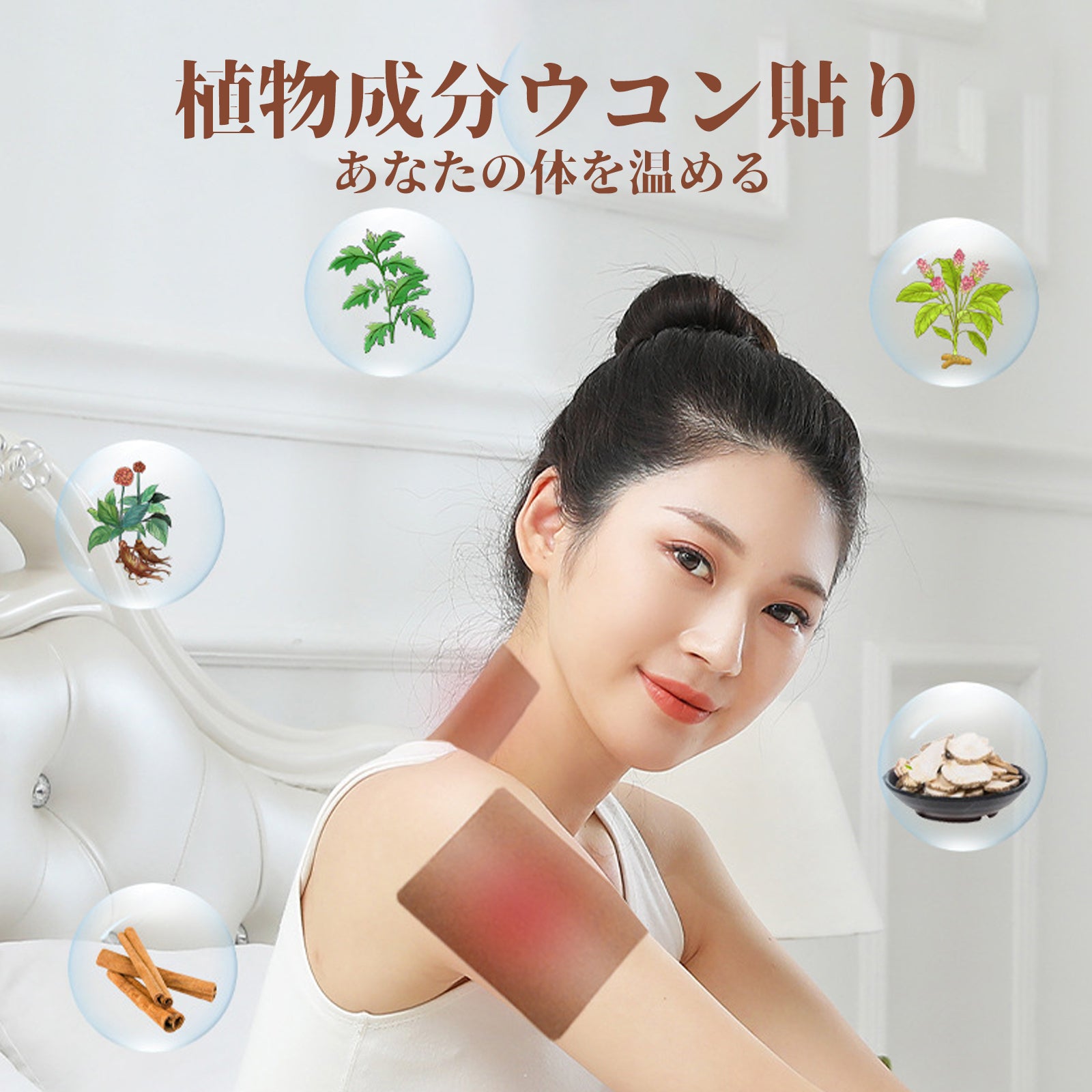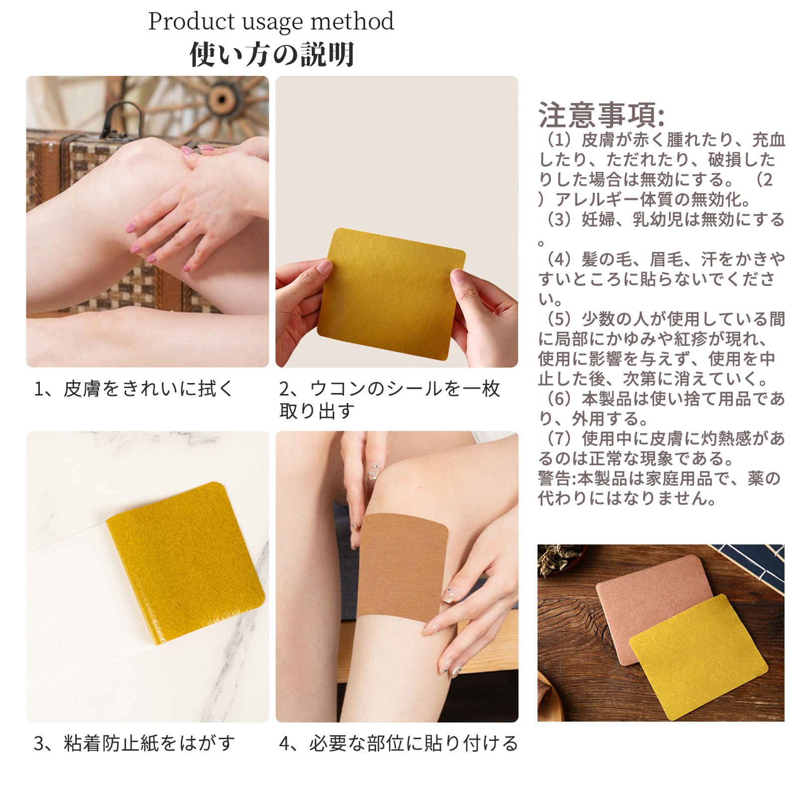 ウコン よもぎ お灸、火を使わない お灸(50コ入)ウコン貼り、千年灸、貼るお灸、雲南省の黄姜漢方技術、植物抽出、快適な通気、簡単な引き裂き貼り、日本語取扱説明書付