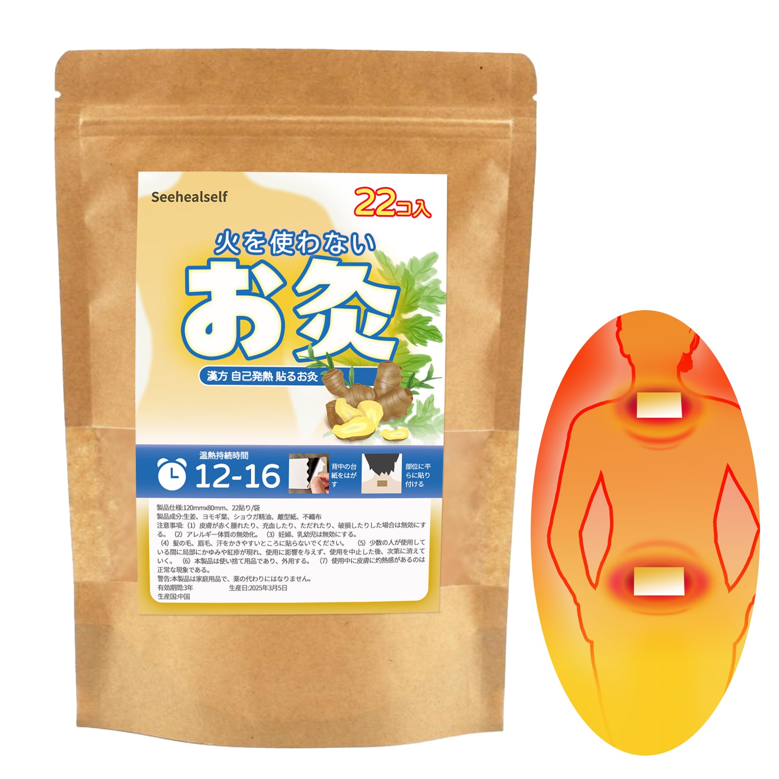 火を使わない お灸(22コ入) 貼るお灸 ヨモギ よもぎシート 千年灸 生姜 温感 漢方 自己発熱 肩 足 腰椎 頚椎 パッチ 温める 毎日健康 作業用 日本語取扱説明書付